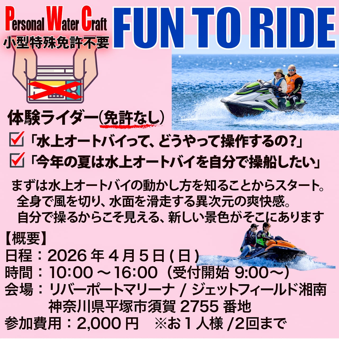 〇ペーパーライダー(※特殊小型船舶免許を持っている方)